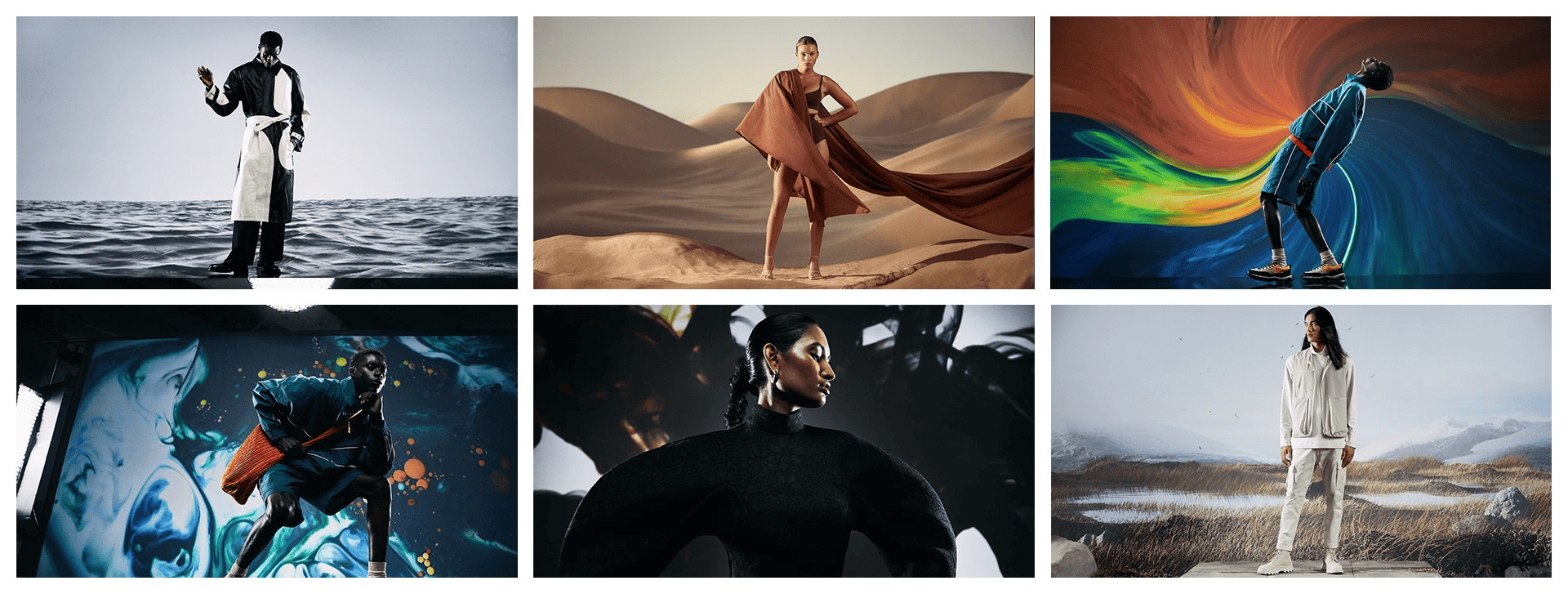The final results seamlessly combine the artistic appeal of quality photography with the boundary-pushing elements of CGI. The subject focus is surrounded by stunning backgrounds, creating new virtual worlds in which your product can exist, inspire, and bring distinctive campaign visuals to life.